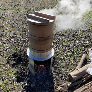 We steamed 20 kg of sticky rice, kneaded with the machine and shaped a lot of round mochi.